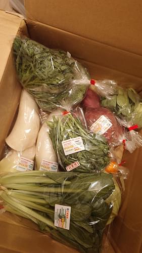 天候の影響か予定より遅く到着しましたが、届いたもの見て大満足です。食べたかった春菊が2つもあってすごく嬉しかったです。これから調理なので味の評価は後ほど。