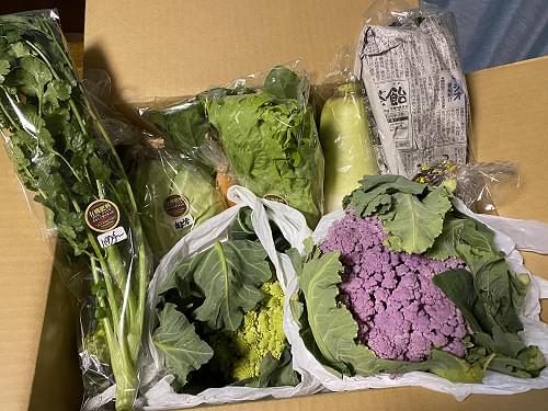 お世話になります。今回も美味しいお野菜をたっぷりとありがとうございました♪ 投稿が遅くなり失礼しました。 とても立派なパープルカリフラワー、茹でたての(蒸し立てかな?)時は本当に鮮やかな色なんですけど、少し時間が経つとミステリアスな色に変化してくるのが面白いですよね。ロマネスコも色々な料理に合わせて頂いてます。今回ネギ増し増しでしたのでたっぷりのネギ鍋だったり、炒めたりして味わいながら、元気をもらっています。 少しずつ春の気配を感じながら、寒暖差の激しい日が続いていますので、お身体に気をつけてお過ごしください。 またよろしくお願いします