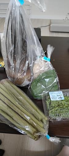 何度も質問しましたがいつでも丁寧にご回答いただきました 山菜類と旬の野菜を希望したため、 フキひとつかみ・フキの葉・こごみ・タケノコ1本が入っていました! タケノコには下処理用の糠?が付いており助かります! 山菜類初心者のため下処理しっかりしていただこうと思います😊