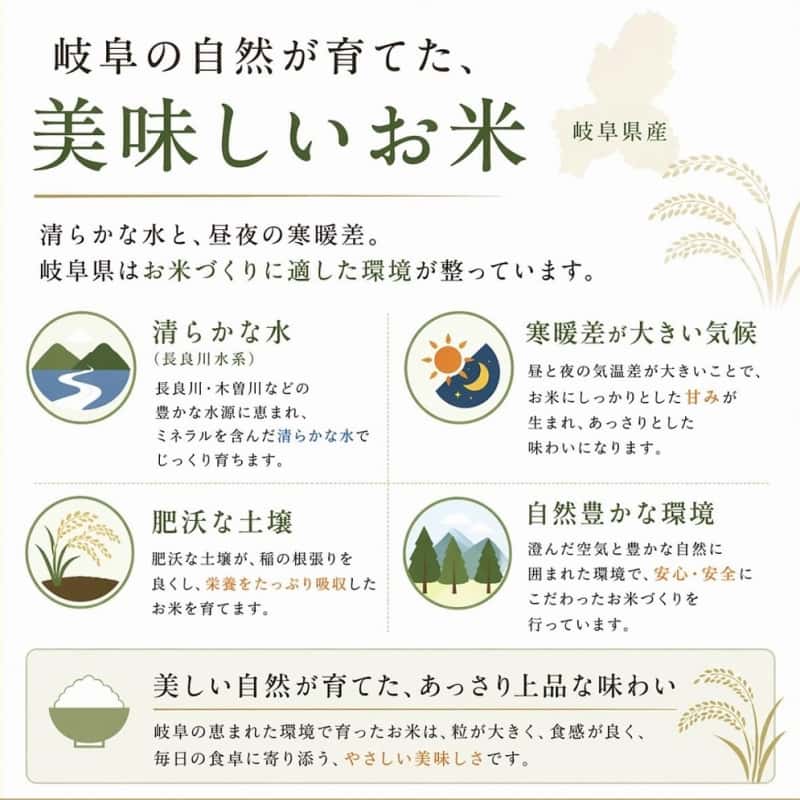 岐阜で水稲農家を営んでおります川瀬ファームと申します。 妻と2人で愛情たっぷりかけて育てたお米です! 是非ご賞味くださいませ。