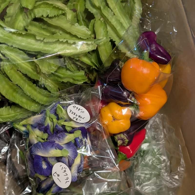 大根 、ブロッコリー、キャベツ、 サラダセット、白菜、なす、きゅうり、 オクラ、いんげん、そらまめ、 スナップえんどう、春菊、ミニトマト、 みかん、レモン、にんじん、ねぎ、レタス 小松菜、ほうれん草、春菊