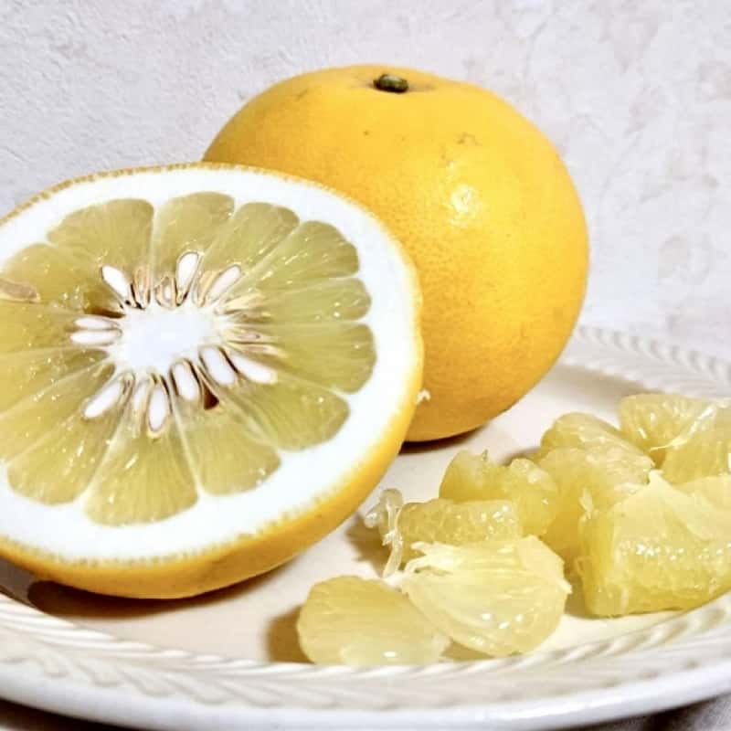 分厚い黄色の果皮の部分には、オーラプテンも多く含まれ、皮ごとマーマレードやジャムにしても美味しいくいただけます。