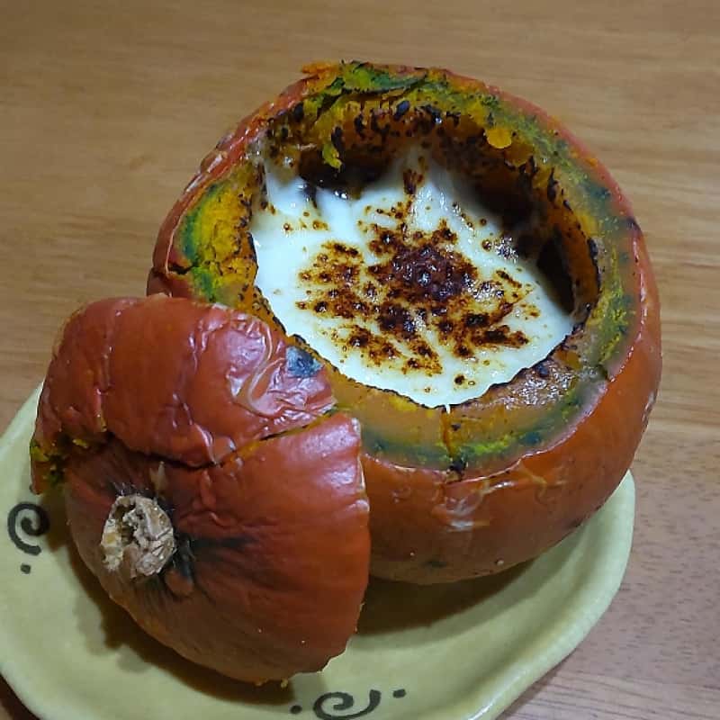 その坊っちゃんの赤色品種、オレンジ色でまさにハロウィンカボチャ!しかもレンチン調理で美味しく頂きました(๑´ڡ`๑)♡