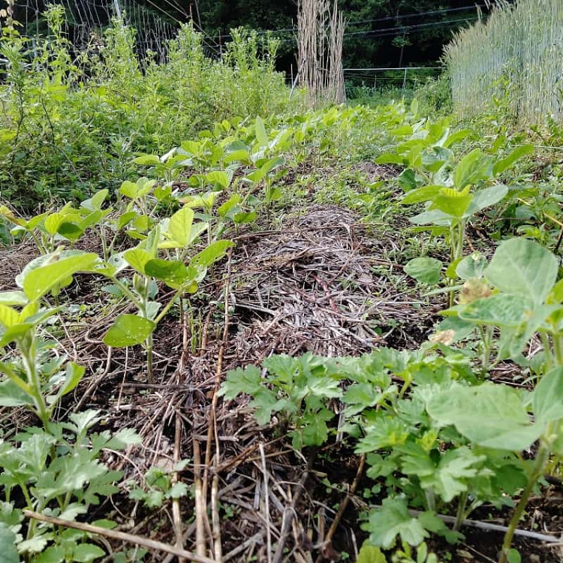いまとれている野菜のほとんどはこの畑にあります。山が近く土が豊かなため不耕起無肥料での栽培を行っています。まだ2年目なので安定はしませんが野菜は元気に育ってくれています。