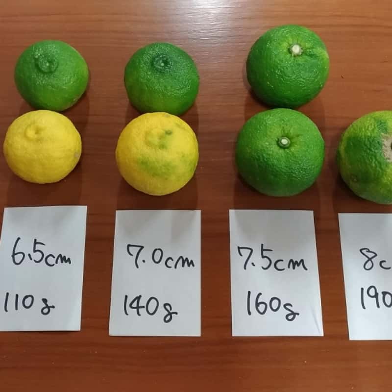 柚子の樹1本につき、5ヶ所ほど穴を掘って施肥しており、非常に手間暇かけて育てた柚子です。