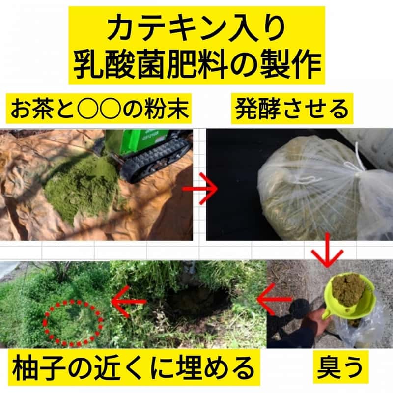 有機栽培は、認可された農薬や肥料を使用することができますが、私の柚子は、乳酸菌とカテキンを配合した天然由来の肥料を使用しています。