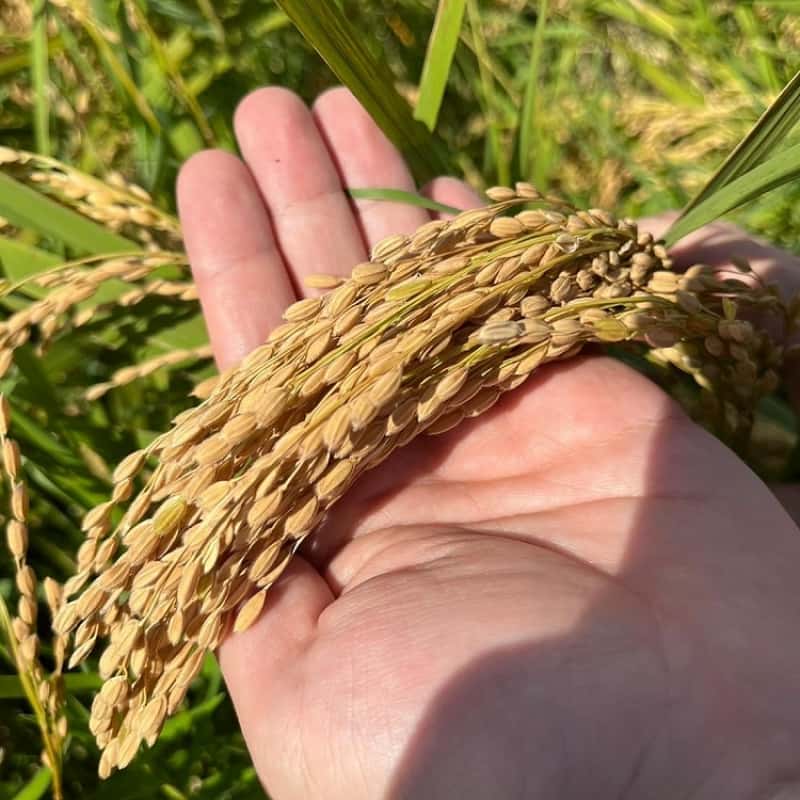 企業秘密となるので多くは語れないのですが"ある成分"が含まれた"ある天然の素材"を土壌に練り込むと稲自体が力強く育ち、大地からの栄養を存分に吸い上げお米1粒1粒に栄養を贈り込んでくれるようになります。