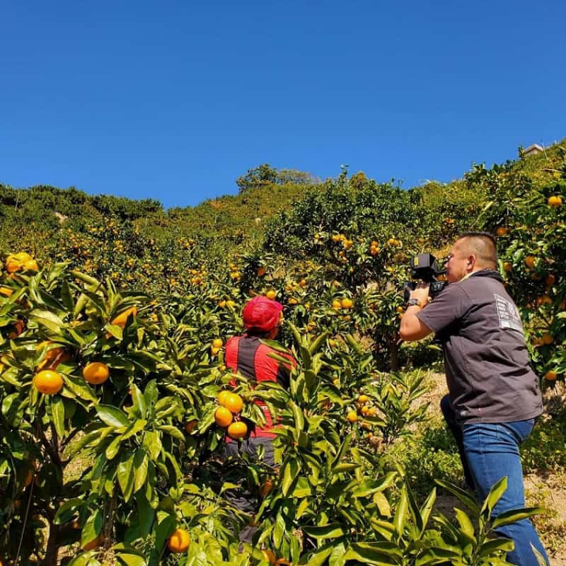 その中でも山内ファームの特徴として、ミカン畑の傾斜が35度もあり、ほぼ直角に感じる急斜面であるまさに『崖の上』で栽培されています。