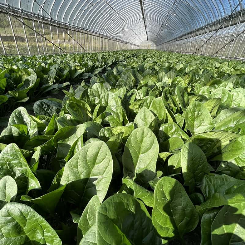 とんぼ農園はほうれん草だけに一点集中したほうれん草専門の農家で、ハウス周年栽培を行なっております。