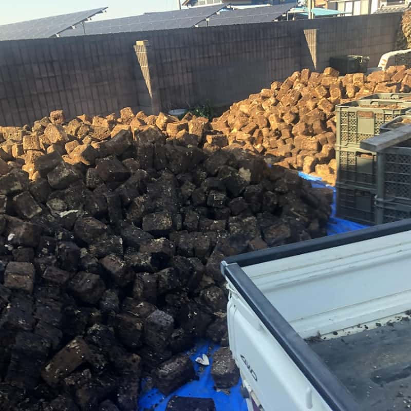 キノコ栽培にて使う菌床(オガクズなど)、うちのお米で出る籾殻を土に混ぜて、野菜の栽培をしております。