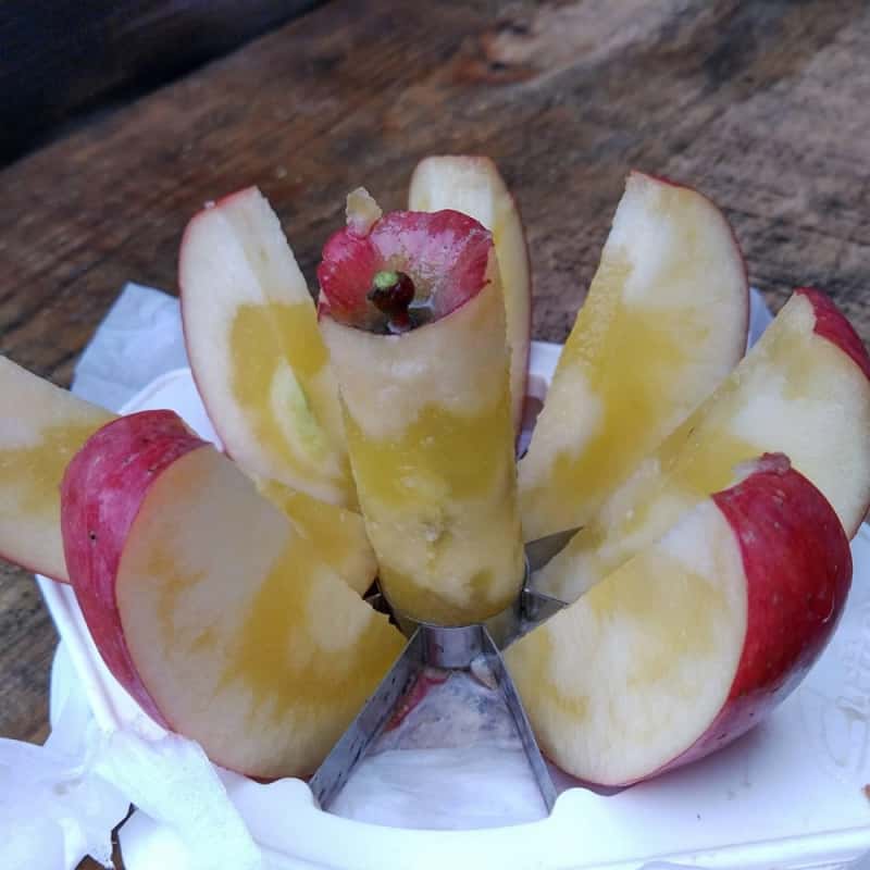 林檎を輪切りにするスターカットと呼ばれる切り方で【スター状の蜜入り】具合を確かめる運試しのようなワクワク感も相まって女性子供には特に大人気となっているほど。