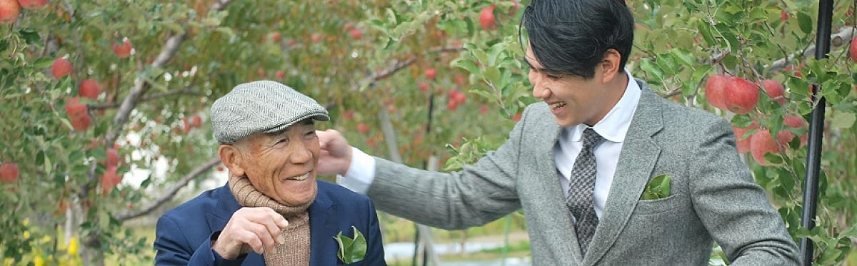 古樹達はこの豪雪地帯で雪害により何度も枝を折られながらも枯れる事なく現在まで立派な林檎を実らせています。樹齢60年ともなると地中の広い範囲に根を張らし養分を吸収し、彼らは自分で必要な養分を作れるのです。そんな古樹に実る林檎は溢れんばかりの果汁があり、秋田の風土も加わり甘酸の絶妙なバランスの濃厚なりんごとなります。60年という長い年月を生き抜いた樹上完熟のフジを是非ご賞味ください!