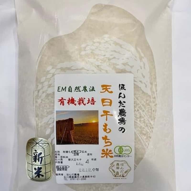 ほんだ農場の新大正もち米は有機栽培で育て天日乾燥したモチ米です。