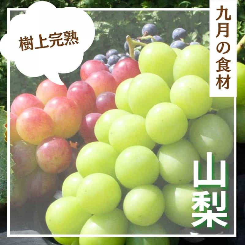 そして9月は【幻の牧丘天空ブランド「カンティーナヒロ」】様より、最高糖度25度を誇るシャインマスカット2房と、芳醇で濃厚な甘みが魅力のクイーンニーナ2房の食べ比べをご用意しております。