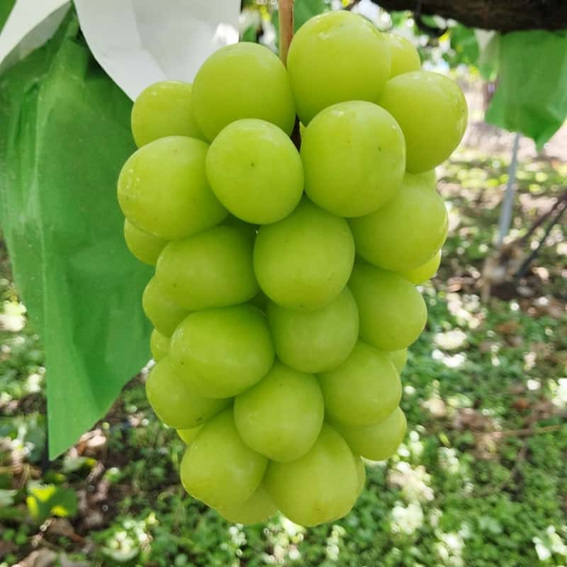 しかし、シャインマスカットのように色づきで糖度が判断できない品種では、見た目で味の判断があまりつきません。副梢は0にしても見た目は良いぶどうができますが、あえて手間を惜しまず味を最優先に栽培しています。