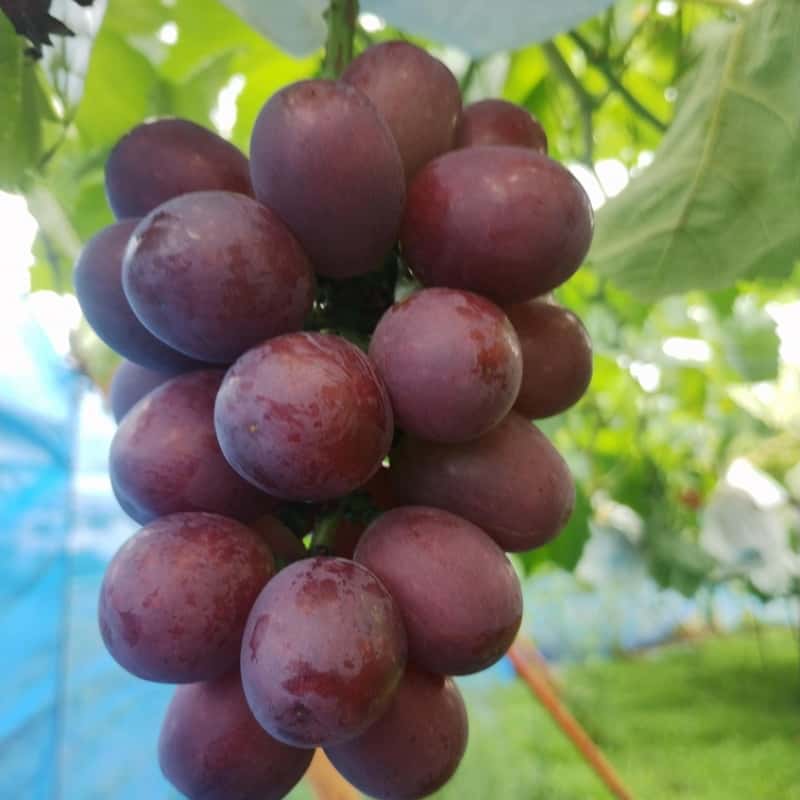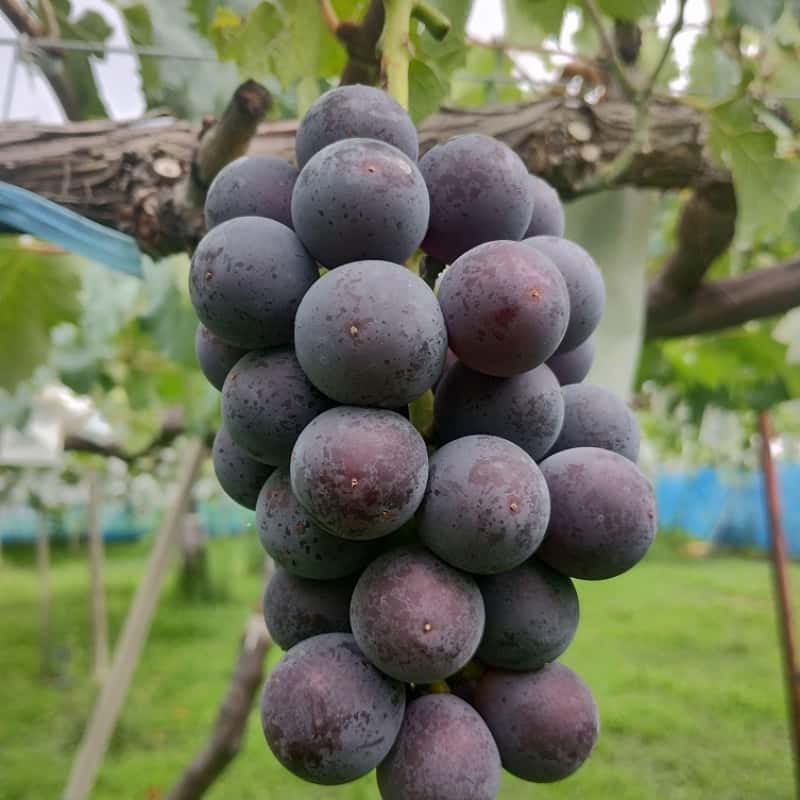 昔からある大粒の品種の代表格。甘酸っぱさと深い味わいが不動の人気。近年の人気品種に比べると酸味が強い為、暑い時期などに食べるのがおススメ。シャインマスカットの爽やかさやデラウェアの軽やかさとは異なり、コクのある甘みと香りの強さが最大の魅力。