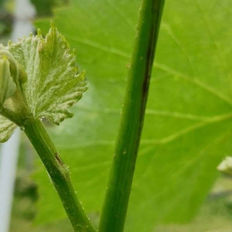 ぶどうの枝からは「副梢」と呼ばれる小さな枝葉が次々と生えてきます。葉が多いほど光合成が進み、美味しい実を育てるためには有効です。
