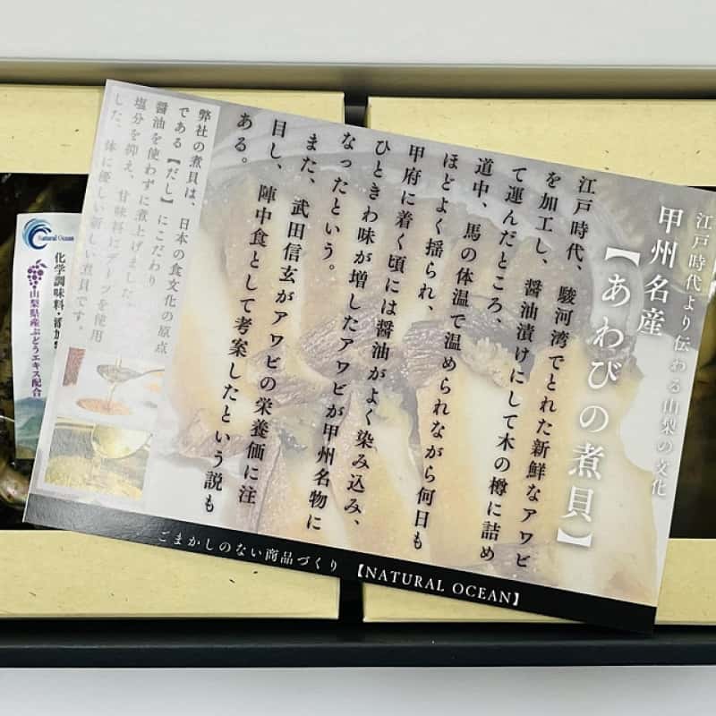 こちらでご提供しますのは、【甲州名産 あわびの煮貝】です。