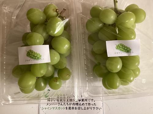 こんにちは。私たちは「にじいろ」と云う障がい者就労継続支援B型事業所です。障がい者のみんなと1年通して果物やお米を栽培してます。 皮ごと食べれて甘くてジューシーなシャインマスカットを丹精込めて作ってます。