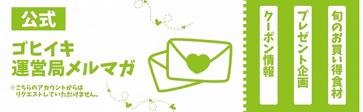 こちらの「【公式】ゴヒイキメルマガ」から配信される収穫NEWSは、