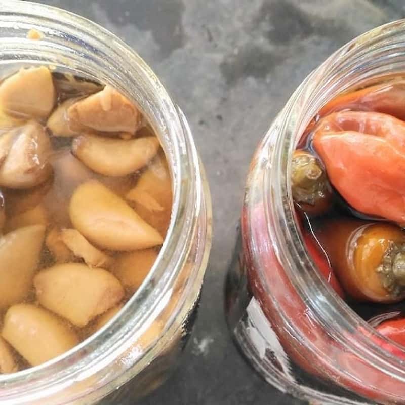 害虫予防に、竹酢液にニンニク・ハバネロを漬け込み、希釈して野菜に噴霧しています。