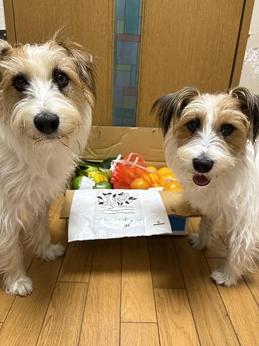 可愛いポーズでみかんとレモンを受け取ってくれてありがとう🐶❣️🍊🍋