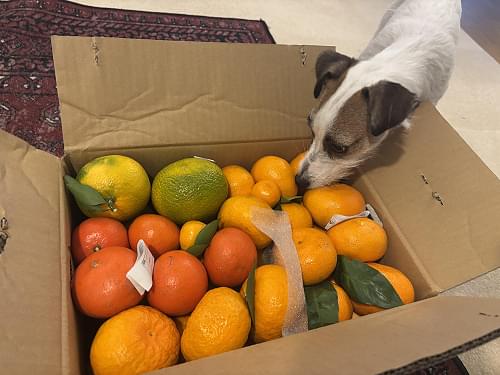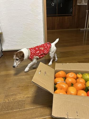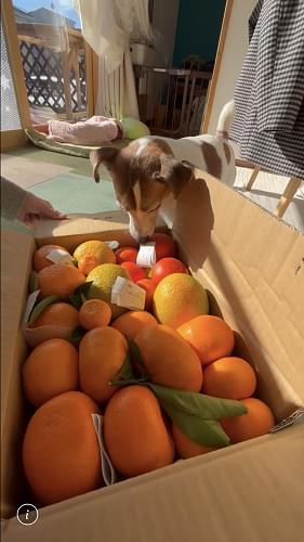 リクエストくださりありがとうございますカノンちゃんみかんをのぞきに来てくれてありがとう❣️🐶📦🍊たっぷりな柑橘で元気に年末年始をお過ごしくださいませ✨