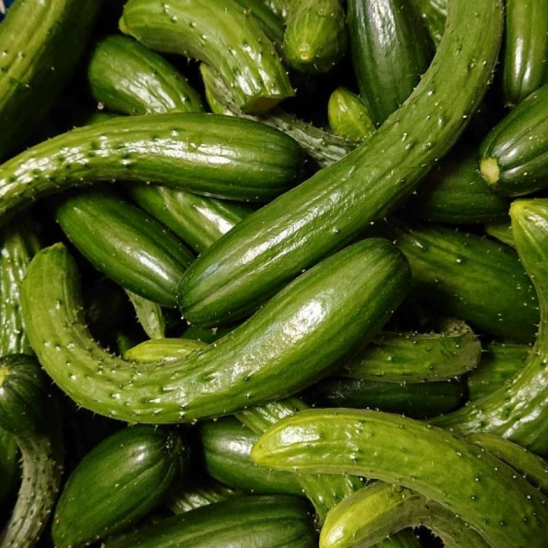 小さい曲がりキュウリです。 そのまま食べても、漬物にしてもOK。 今が美味しさ満点のキュウリです。