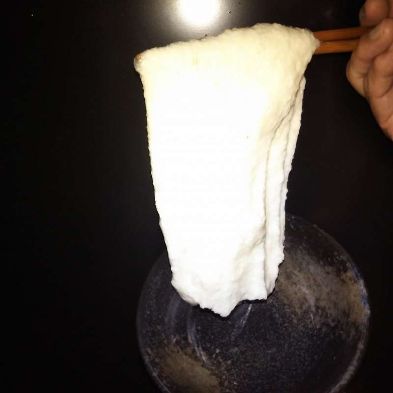 出汁で伸ばしたとろろの 山かけご飯うどん蕎麦 すりおろしたとろろ100円玉程度の大きさ スプーンで取り 180°の油で揚げて 30秒 外はカリッと中はしっとり 揚げたてを塩ポン酢めんつゆ などでいただく 初めての食感 お子様もお年寄りも大好き とろろ汁をかけて食べる贅沢な自然薯鍋