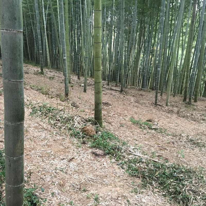 竹を切る際に出た穂先や笹を粉砕したものを撒いて筍を育てています☆