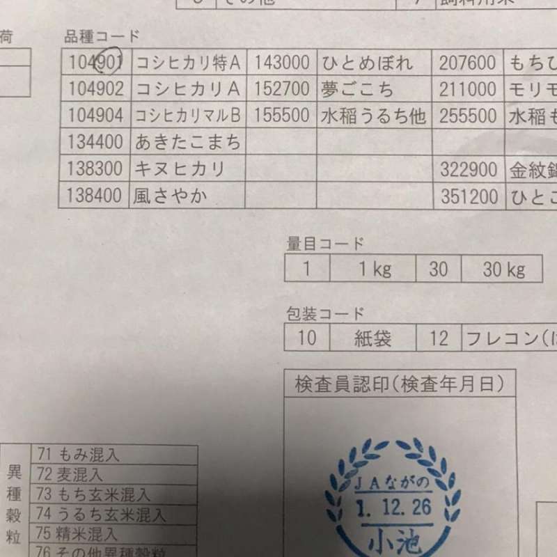 特A米コシヒカリです。