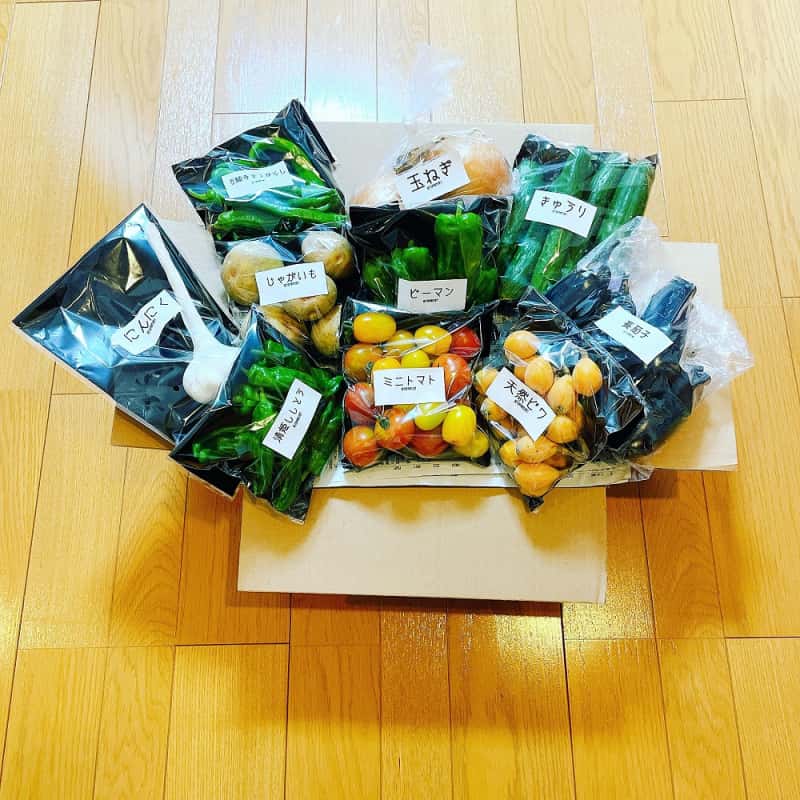 清姫ししとう・万願寺とうがらし・ピーマン・きゅうり・長茄子・ミニトマト・ジャガイモ・玉ねぎ・ニンニクなど現在、収穫準備中の野菜を含む15〜20種類の野菜の中からその日採れた最高のお野菜を7〜10種類ほど入れて出荷致します‼️