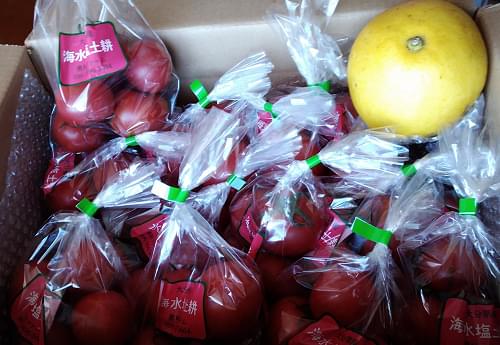 豊後水道の海水を利用し、有機資材のみでの土作り、温暖な気候をフルに生かした高糖度トマトです。