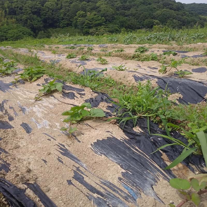 6月はさつまいもを中心に植えてます。さつまいももいろいろ種類があります。
