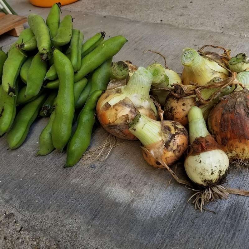 今でしたら空豆、たまねぎ、きくな、えんどう豆、きゅうり、スナップえんどうがございます。