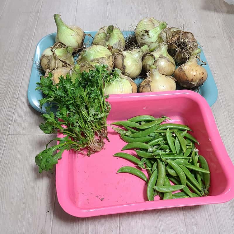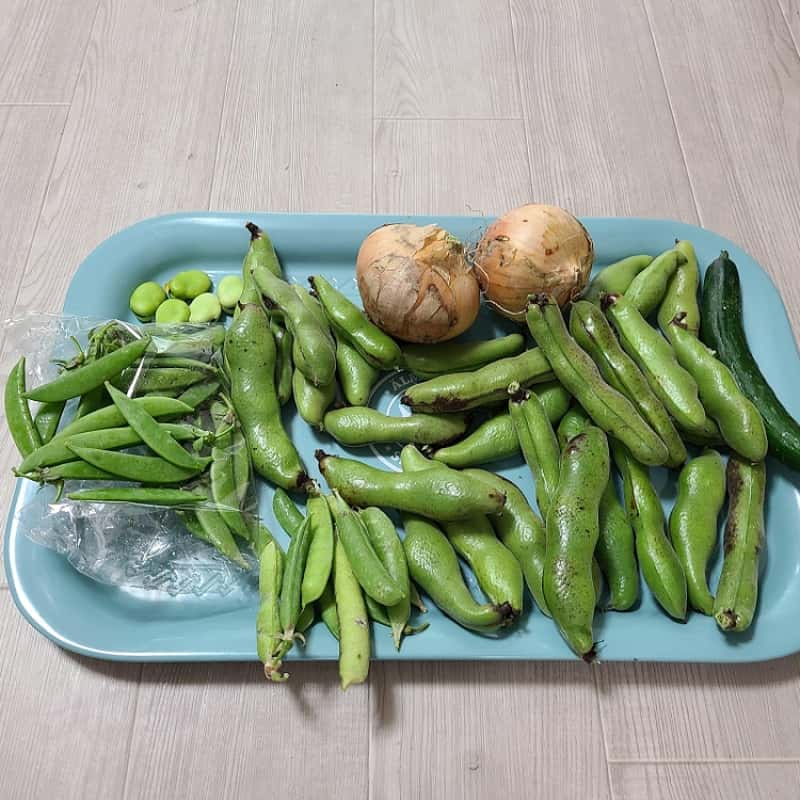 今でしたら空豆、たまねぎ、きくな、えんどう豆、きゅうり、スナップえんどうがございます。