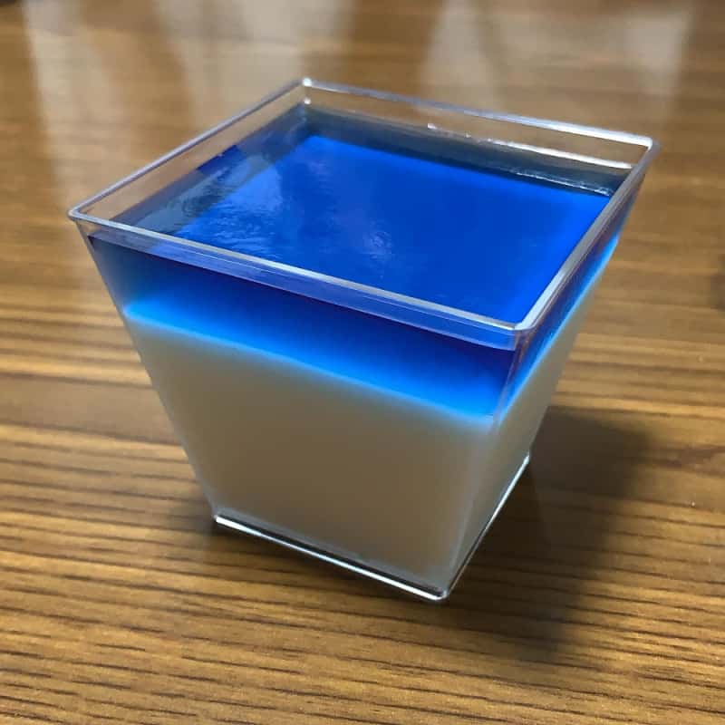 牛乳プリンの上に、バタフライピーゼリーを乗せてみました。