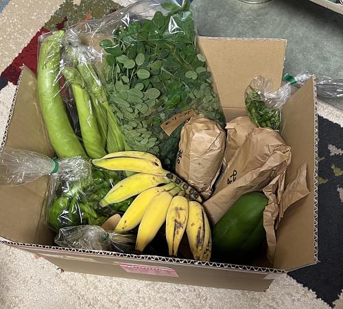 到着しました。初青パパイヤ、初耳モリンガ😃モリンガ生でも食べられる様なので今日ヤムウンセンで使ってみます。青パパイヤも一つずつ包んで頂いてあるので今週親戚に配ってきます。アップルバナナ、ラッキー♡食べるの楽しみ。
