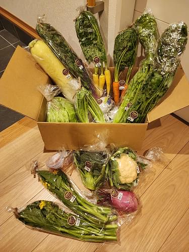 沢山の新鮮野菜、受け取りました!毎回、初めて見るお野菜が入っているので、箱を開ける瞬間にとてもワクワクします。