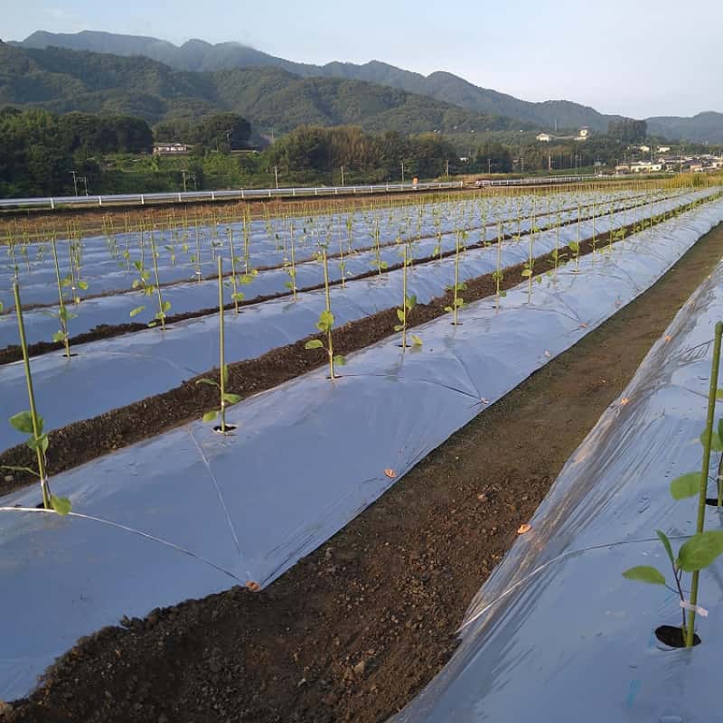 当園の地域では、なすをトウモロコシの作付け後に栽培する「抑制栽培」、いわゆる「秋なす」と言われる栽培をしております。