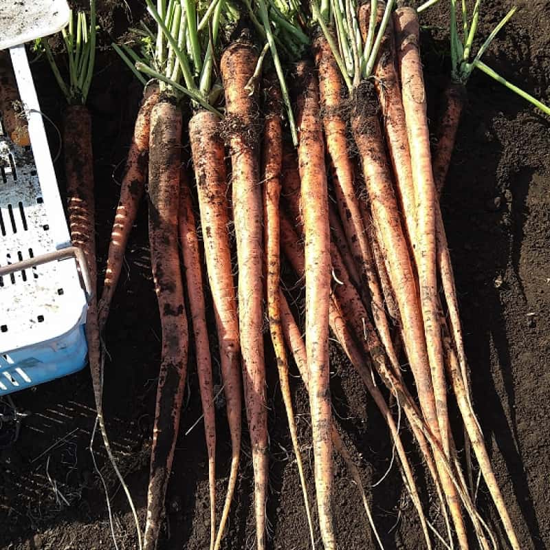冬の寒い時期に収穫するため、通常の人参に比べ、甘みが強く味の濃い人参となります。