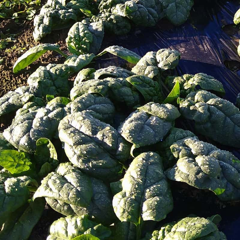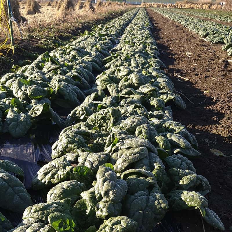 寒締め栽培という、昔ながらの露地栽培で作物が寒さから身を守ろうとする力を活かした栽培方法で育てます。少しでも多く陽に当たるよう地面を這うように葉を広げ、凍らないように自身の身を守ろうと水分を減らして成長します。そして、水分とは逆に糖分を蓄えていくので、葉に厚みが出て甘みが増すのです。その糖度は高いもので10以上あります。通常のほうれん草より栄養価が高く甘みが強くなり、エグミが少ないのが特徴です。