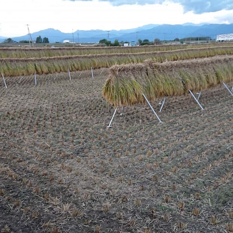 ですが、あえて、重労働ですが、「はざかけ」をして、天日干しの少しでも味の良いお米にしようと努力しています。