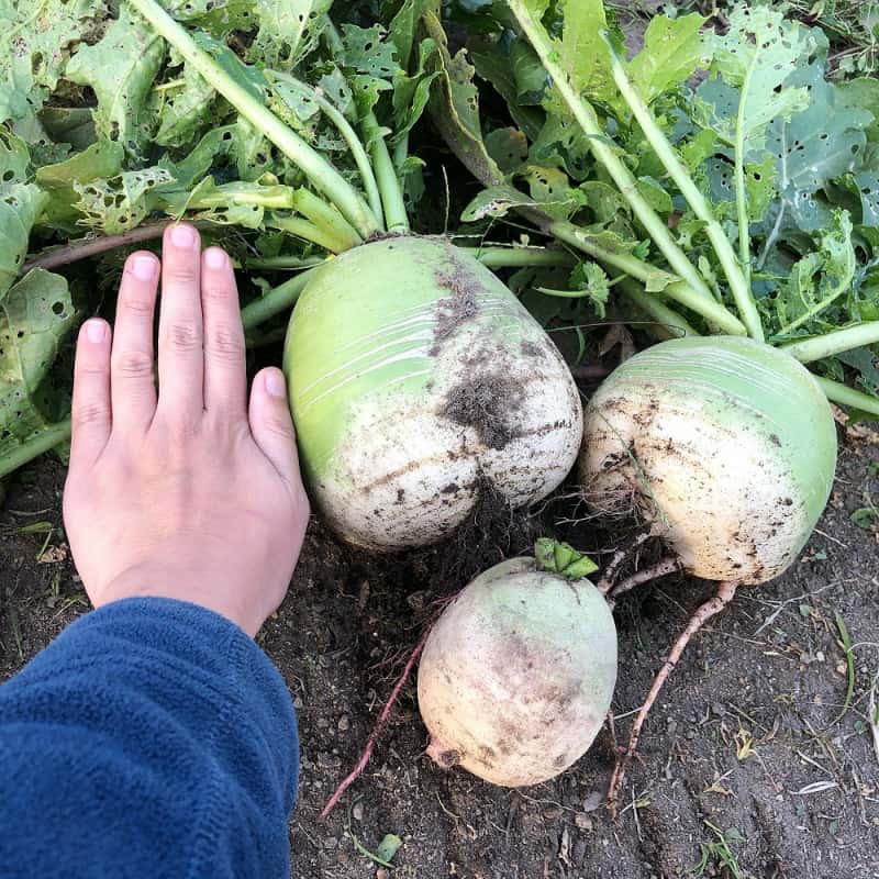 畑の黒丸大根も大きくなってきました✨