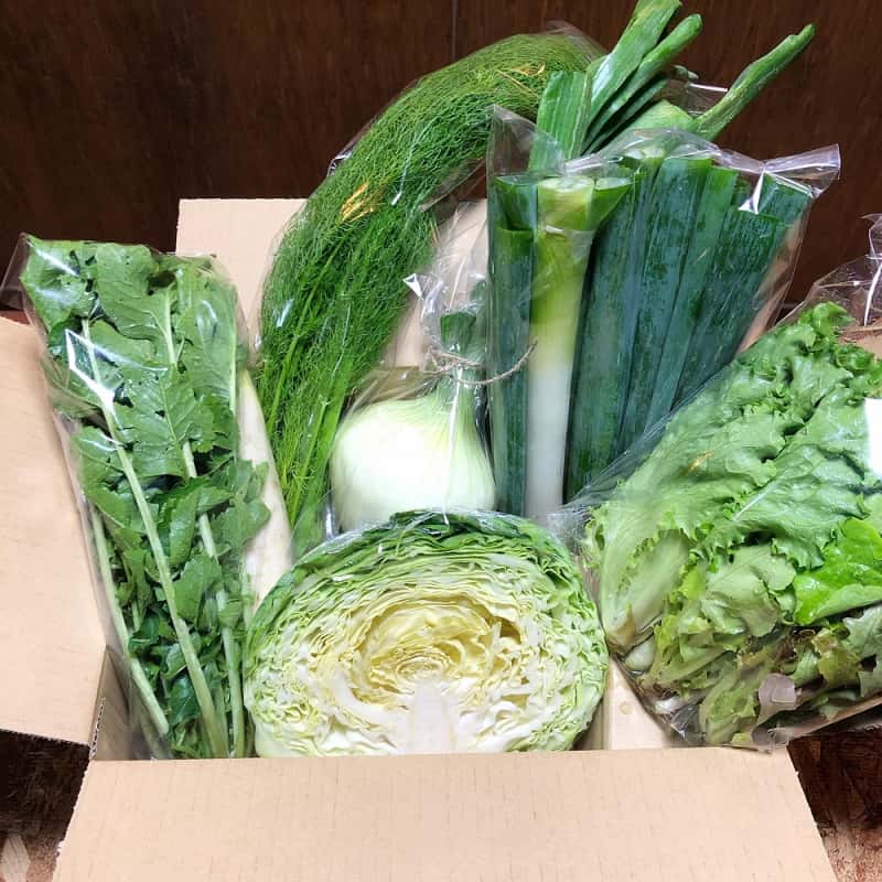 メールの返信も早く、お品物の梱包も丁寧で満足いたしました!ただ、珍しい野菜が入っているかな?と思いきや、葉物が多く、お値段的なコスパはあまり良くない様に感じました。