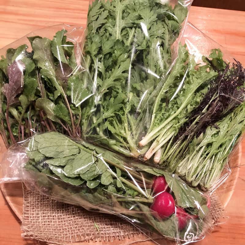 有機ファームえんはあまり市場に出回らないようなめずらしい品種を積極的に採用し、収穫のタイミングも一般的なものから若芽や早穫りなど様々なタイミングのものを収穫しご提供しています。