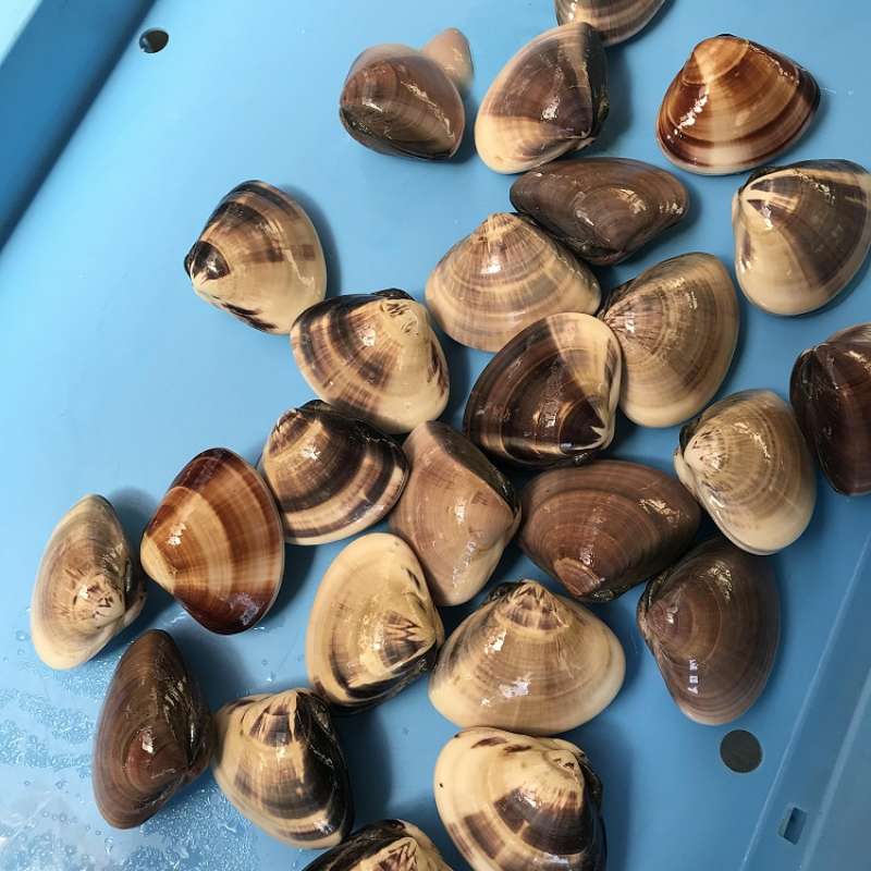 漁獲した活けハマグリを砂抜きしてから発送致します。
