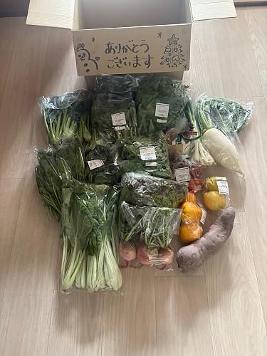 届きました。いつもたくさんの野菜や果物をありがとうございます。100回まできましたか。これからも引き続きよろしくお願いします。