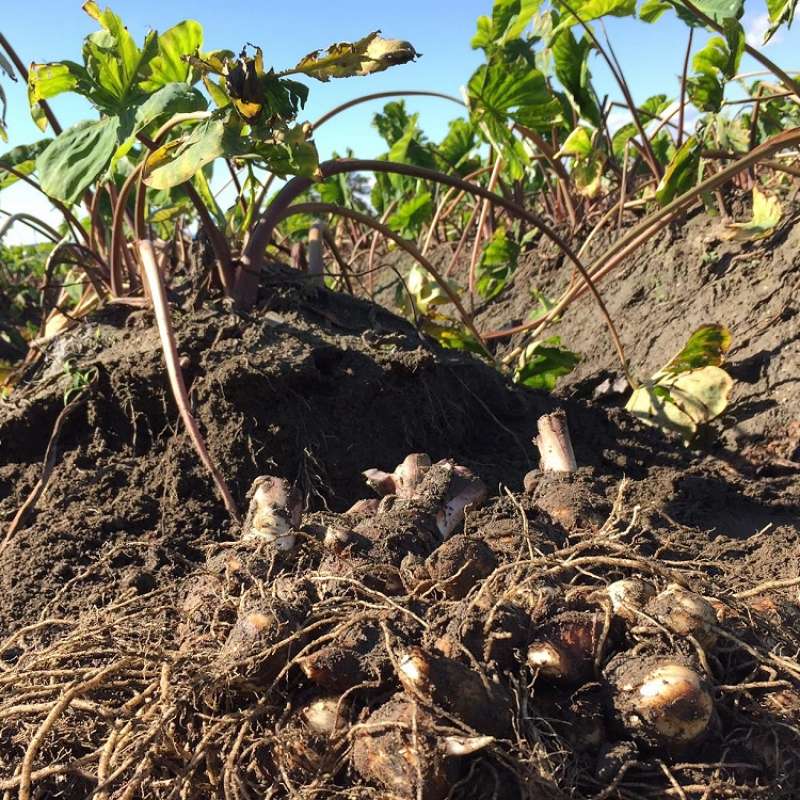 海老芋の子芋は、里芋と違って肉質が軟らかく煮崩れを起こさないため、京料理などの細工料理やおでん、煮物に向いています。孫芋も特性は子芋と同じで、里芋の孫芋よりクリーミーな食感を味わうことができます。栄養面では、脂肪の燃焼に必要なビタミンB2が多く、しかも低カロリーなので、ダイエットには最適な食材です。カリウムも豊富で高血圧の方の栄養補給に適しており、独特のヌメリの正体であるムチンは解毒作用のある酵素で、肝臓や腎臓を丈夫にし老化防止に役立つと言われています。
