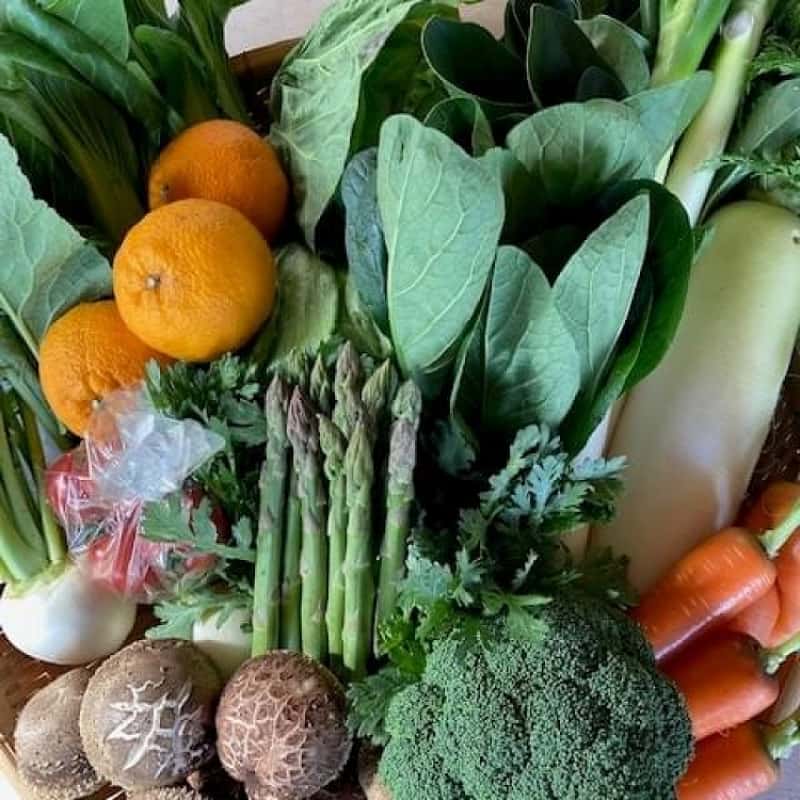 キャベツ・アスパラガス・ミニトマト・大根・玉ねぎ・じゃがいも・人参・胡瓜・ほうれん草・小松菜・サニーレタス・水菜・原木椎茸・干椎茸スライスなど